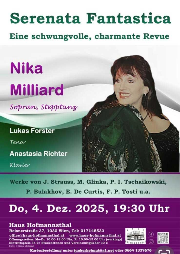 Verpassen Sie nicht die seltene Gelegenheit Nika Milliard singen zu erleben!